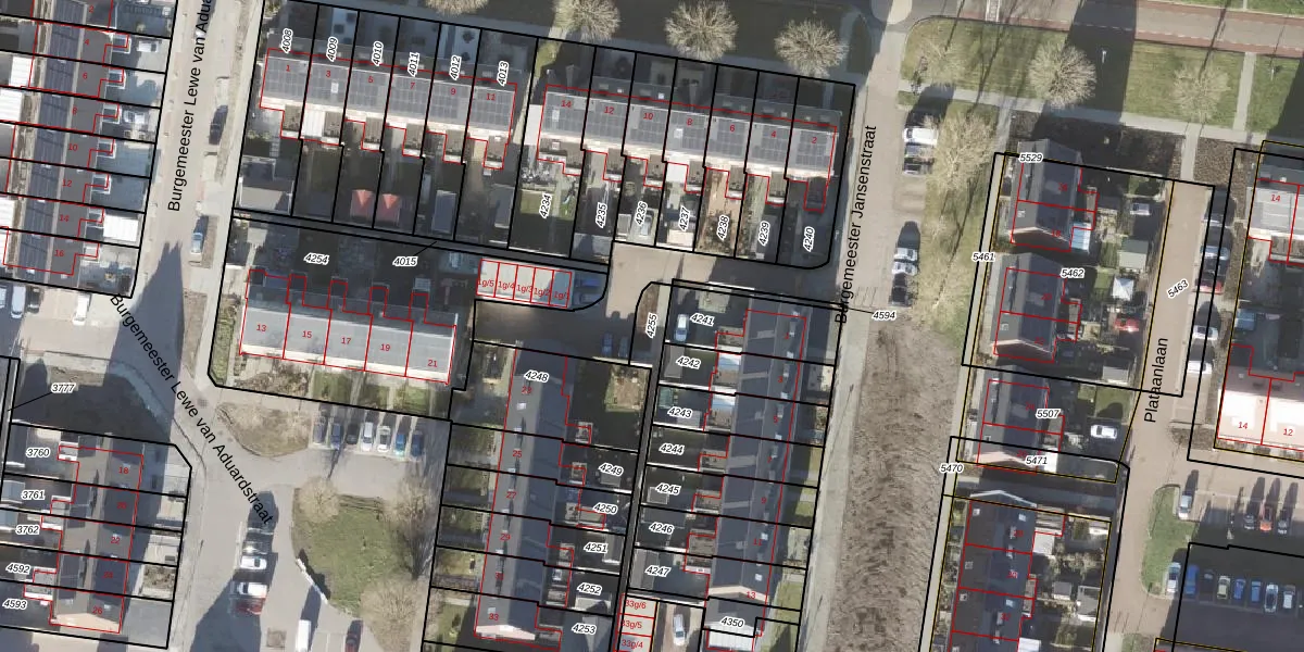 Gebruik de zoekbalk of klik op een perceel om informatie over het perceel te bekijken.