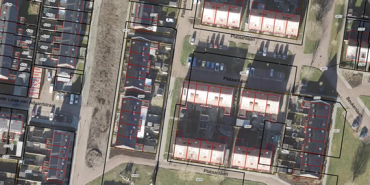 Gebruik de zoekbalk of klik op een perceel om informatie over het perceel te bekijken.