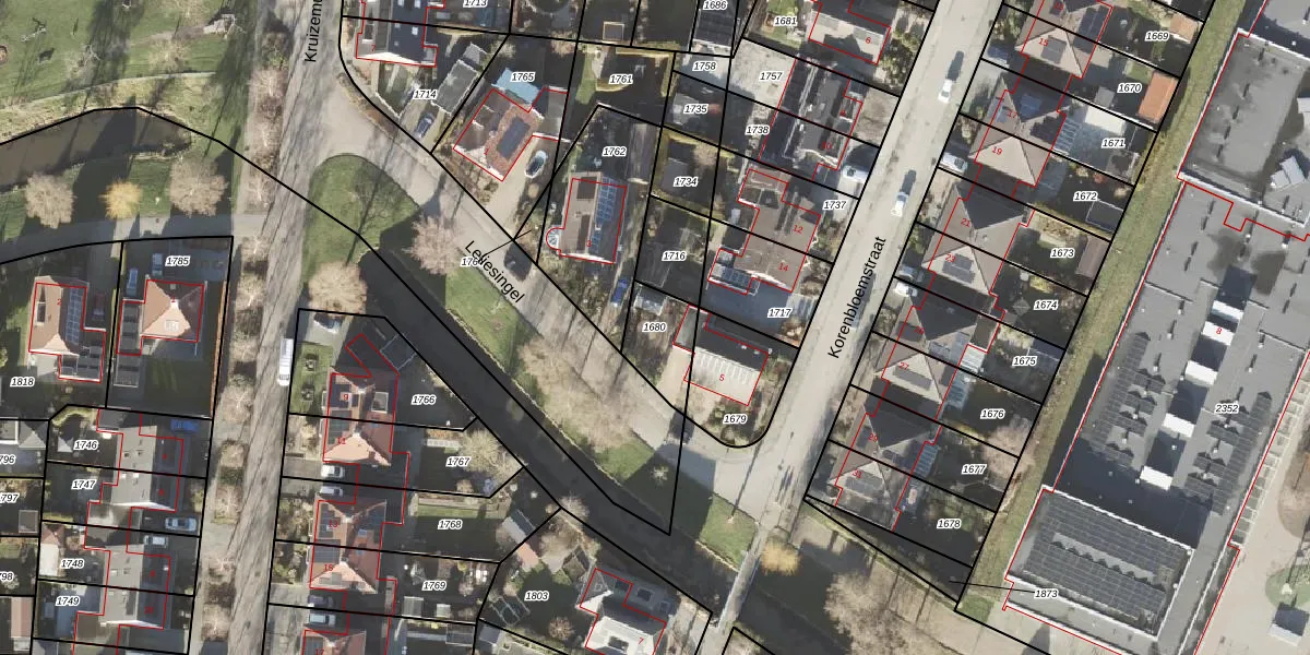 Gebruik de zoekbalk of klik op een perceel om informatie over het perceel te bekijken.