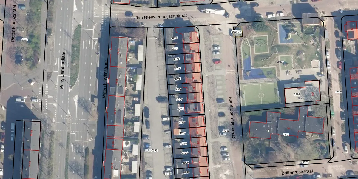 Gebruik de zoekbalk of klik op een perceel om informatie over het perceel te bekijken.