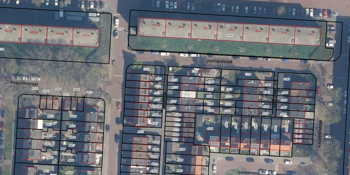 Gebruik de zoekbalk of klik op een perceel om informatie over het perceel te bekijken.