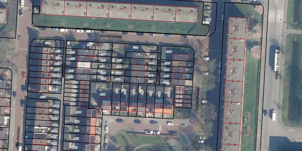 Gebruik de zoekbalk of klik op een perceel om informatie over het perceel te bekijken.