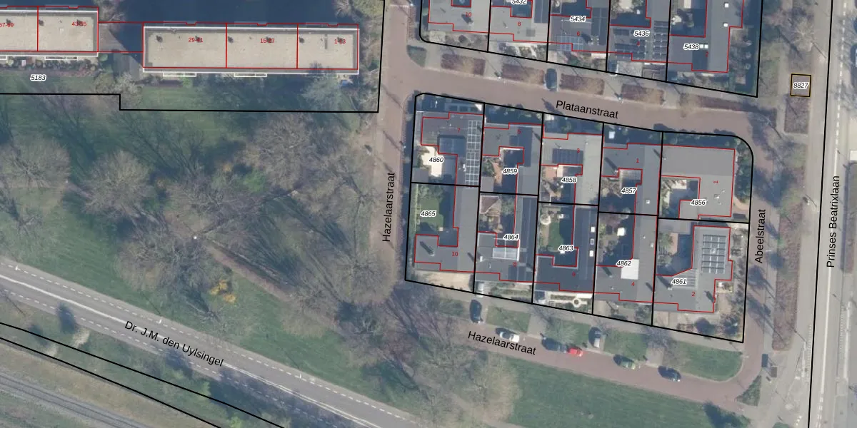 Gebruik de zoekbalk of klik op een perceel om informatie over het perceel te bekijken.