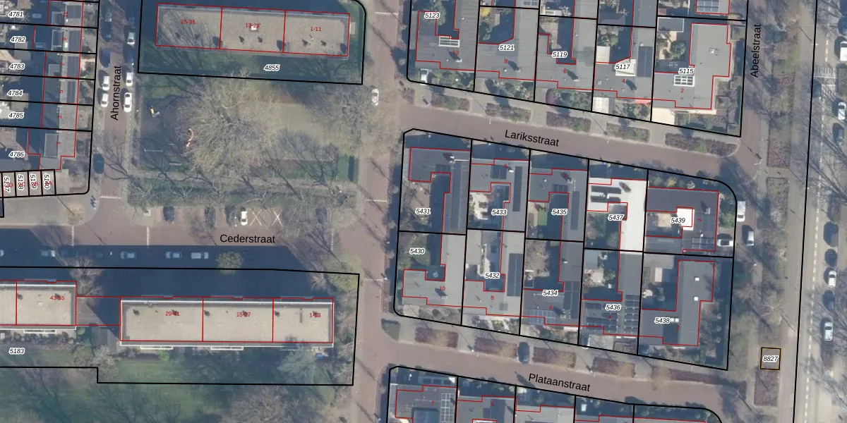 Gebruik de zoekbalk of klik op een perceel om informatie over het perceel te bekijken.