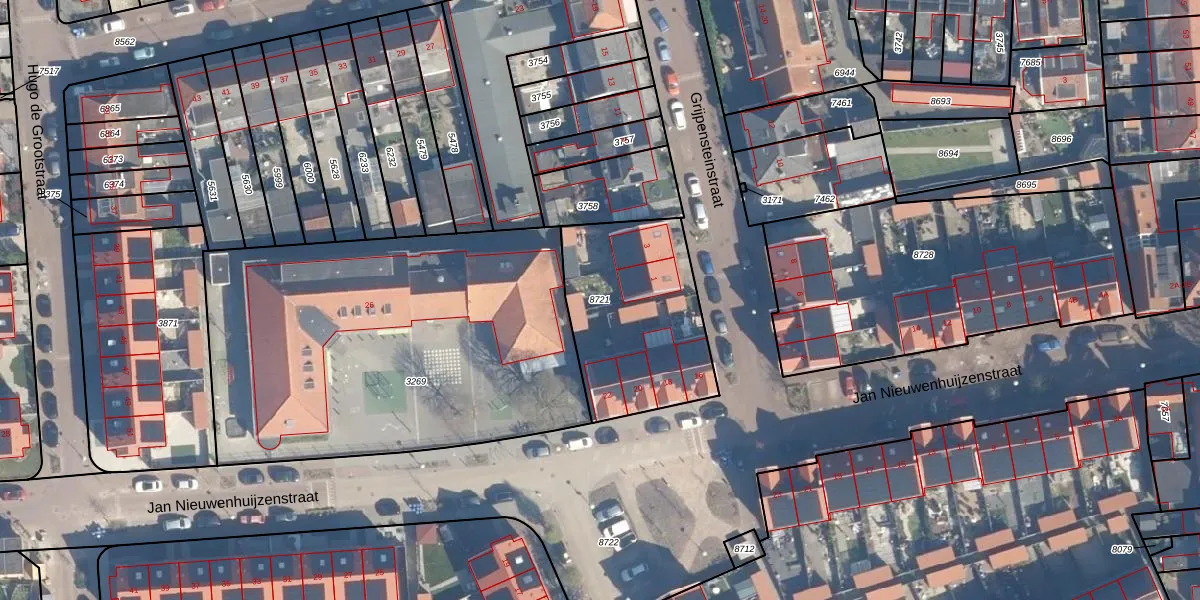Gebruik de zoekbalk of klik op een perceel om informatie over het perceel te bekijken.
