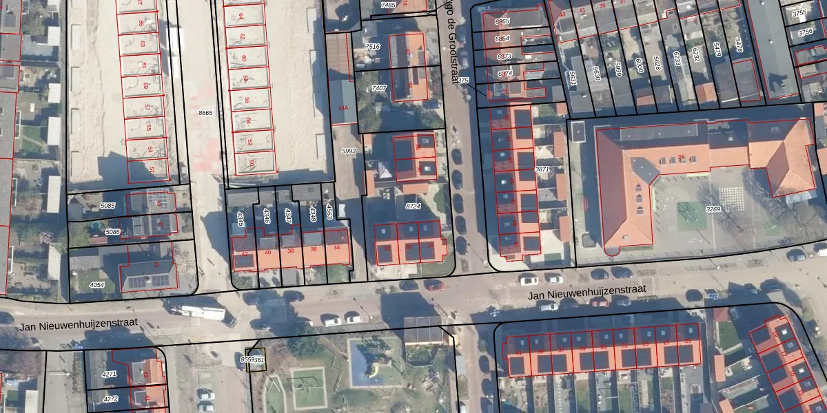Gebruik de zoekbalk of klik op een perceel om informatie over het perceel te bekijken.