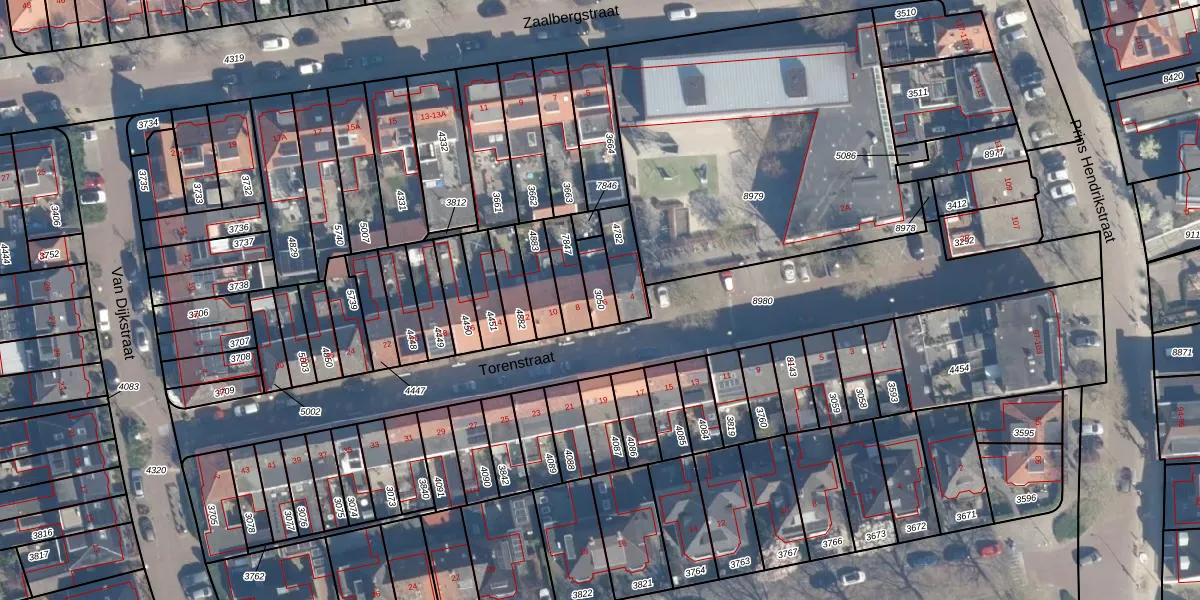 Gebruik de zoekbalk of klik op een perceel om informatie over het perceel te bekijken.