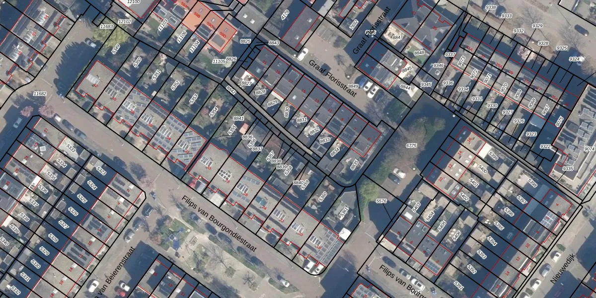 Gebruik de zoekbalk of klik op een perceel om informatie over het perceel te bekijken.