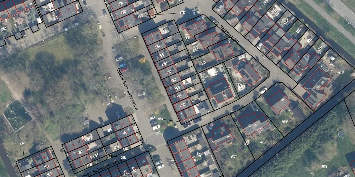Gebruik de zoekbalk of klik op een perceel om informatie over het perceel te bekijken.