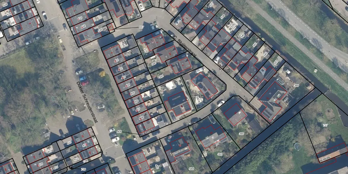 Gebruik de zoekbalk of klik op een perceel om informatie over het perceel te bekijken.