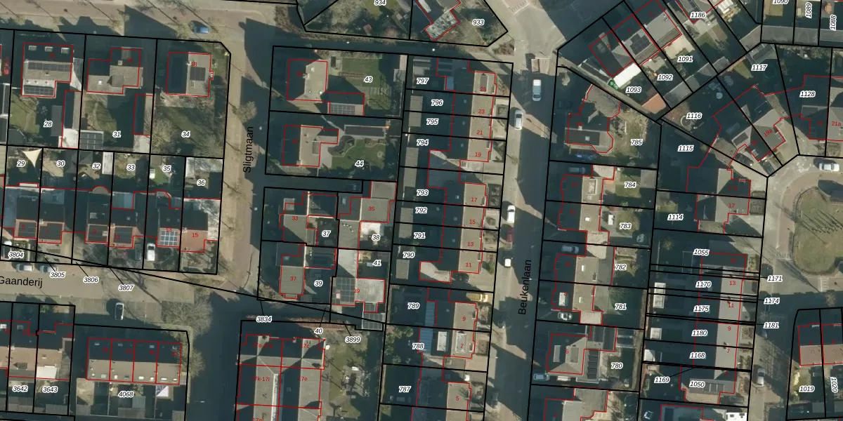 Gebruik de zoekbalk of klik op een perceel om informatie over het perceel te bekijken.