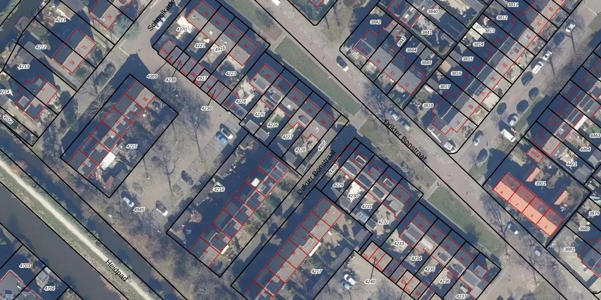 Gebruik de zoekbalk of klik op een perceel om informatie over het perceel te bekijken.