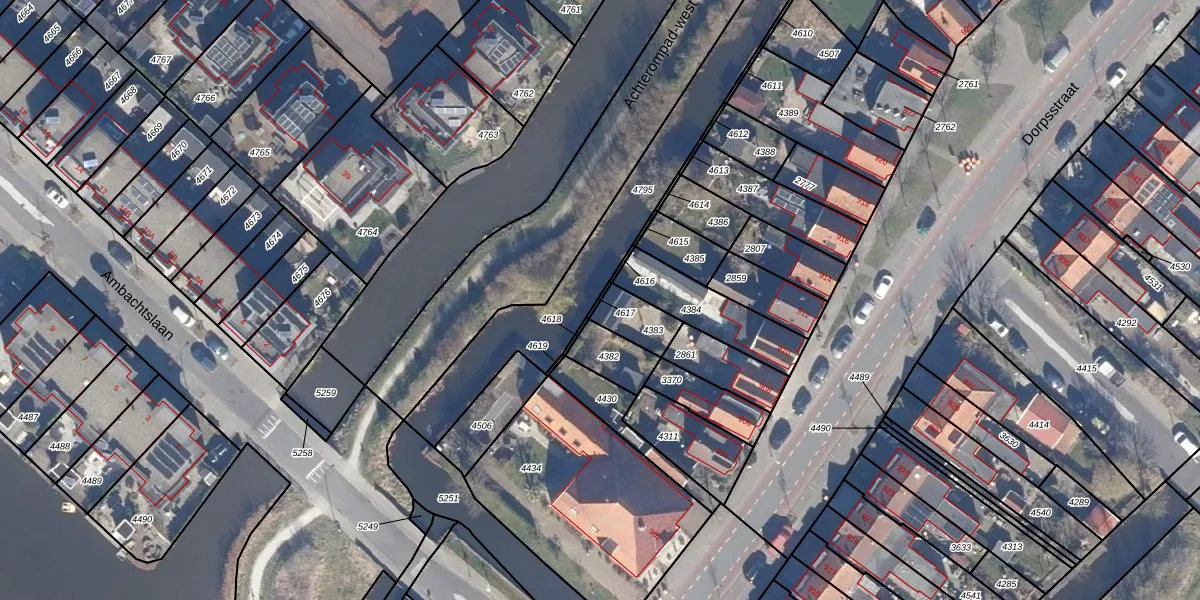 Gebruik de zoekbalk of klik op een perceel om informatie over het perceel te bekijken.