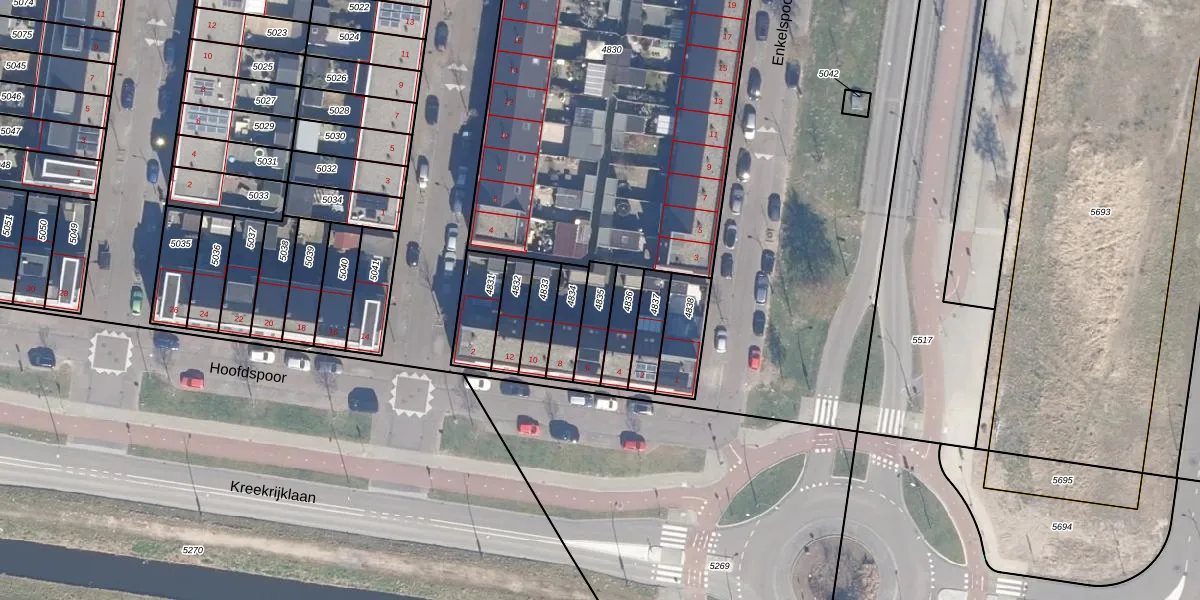 Gebruik de zoekbalk of klik op een perceel om informatie over het perceel te bekijken.