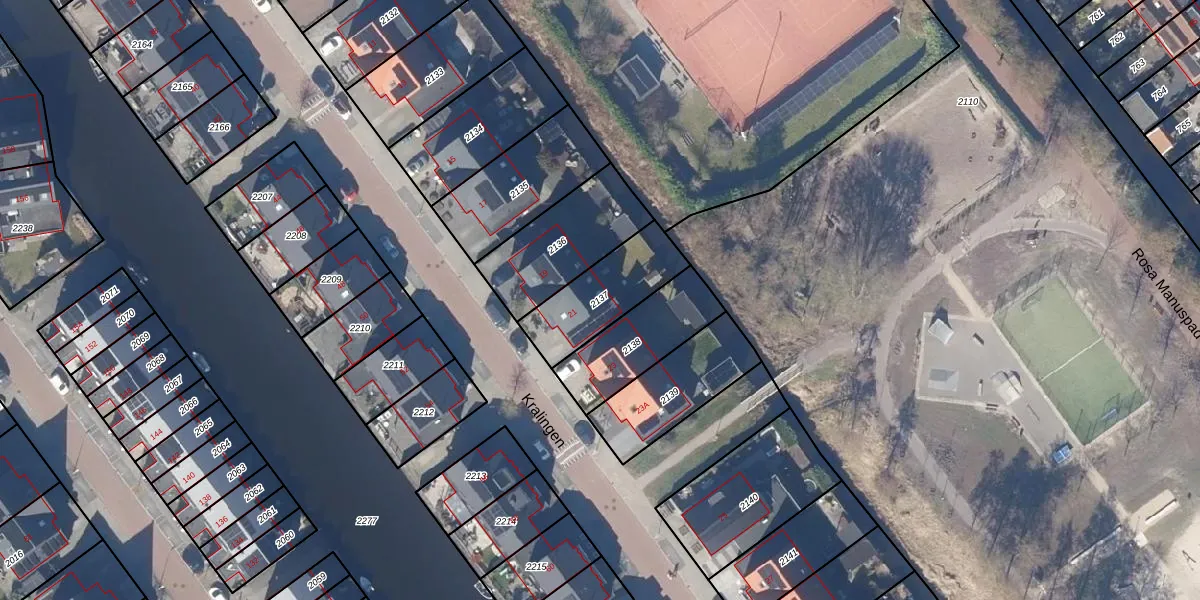 Gebruik de zoekbalk of klik op een perceel om informatie over het perceel te bekijken.