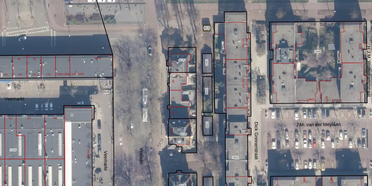 Gebruik de zoekbalk of klik op een perceel om informatie over het perceel te bekijken.