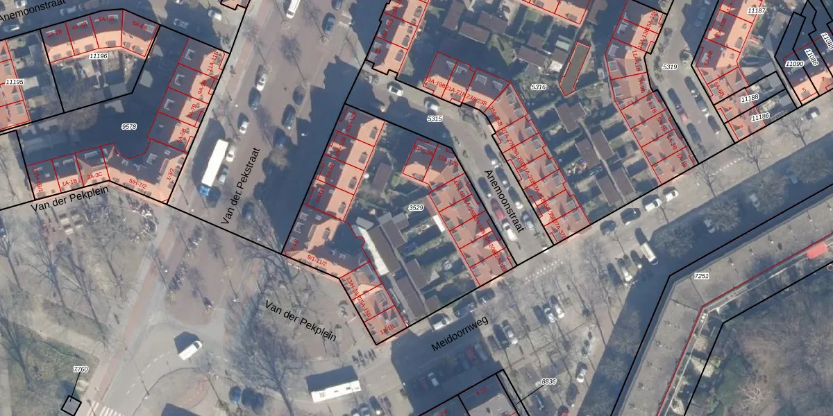 Gebruik de zoekbalk of klik op een perceel om informatie over het perceel te bekijken.