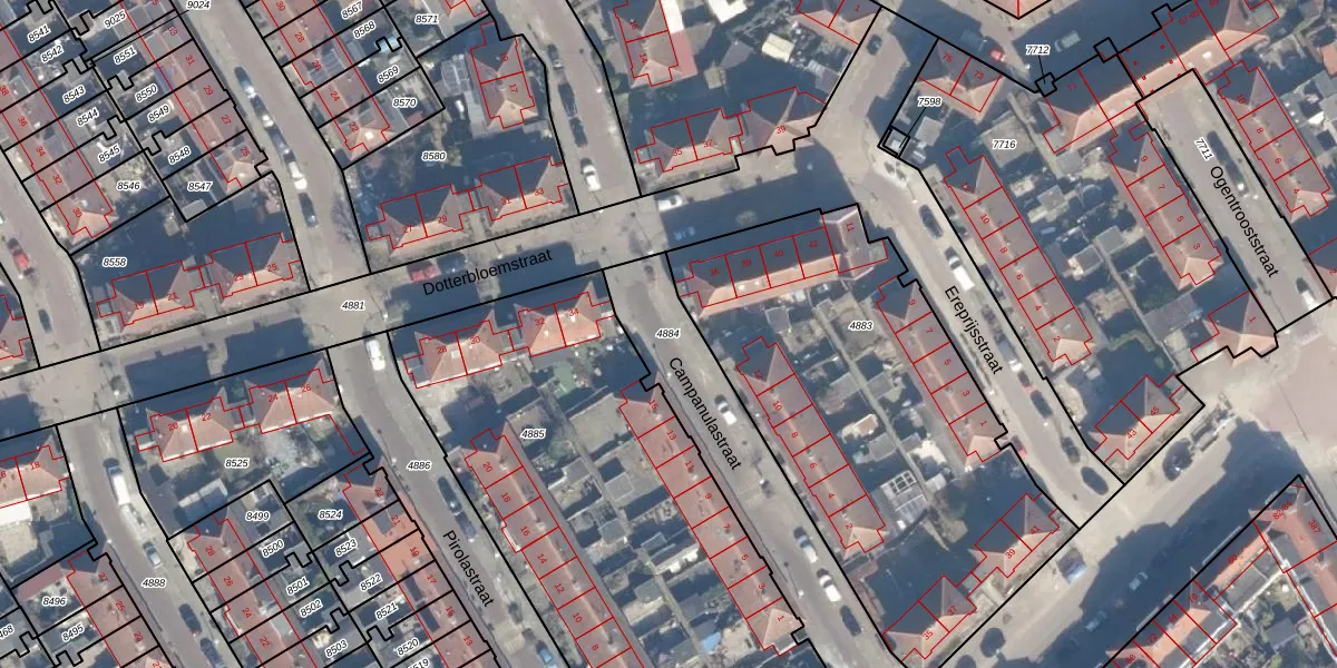 Gebruik de zoekbalk of klik op een perceel om informatie over het perceel te bekijken.