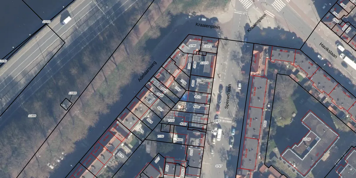 Gebruik de zoekbalk of klik op een perceel om informatie over het perceel te bekijken.