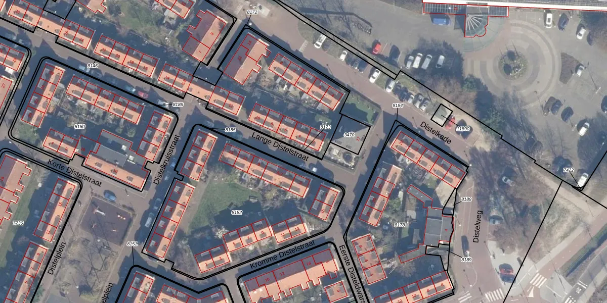 Gebruik de zoekbalk of klik op een perceel om informatie over het perceel te bekijken.