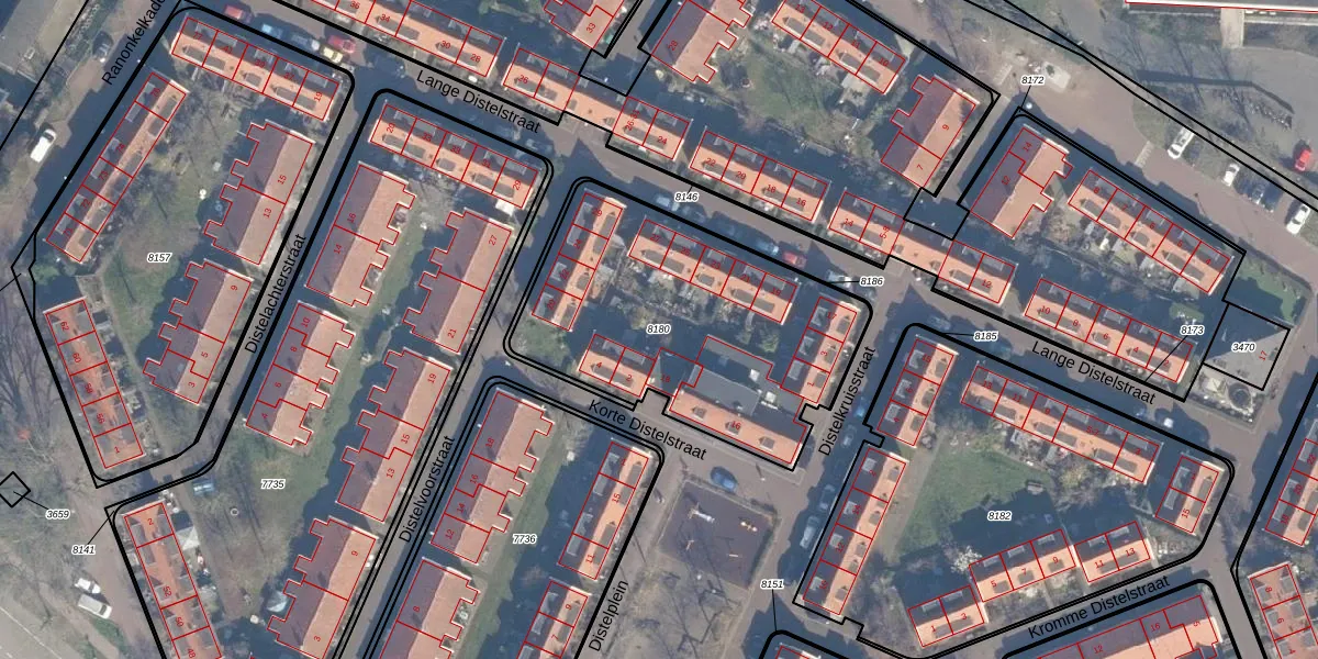 Gebruik de zoekbalk of klik op een perceel om informatie over het perceel te bekijken.