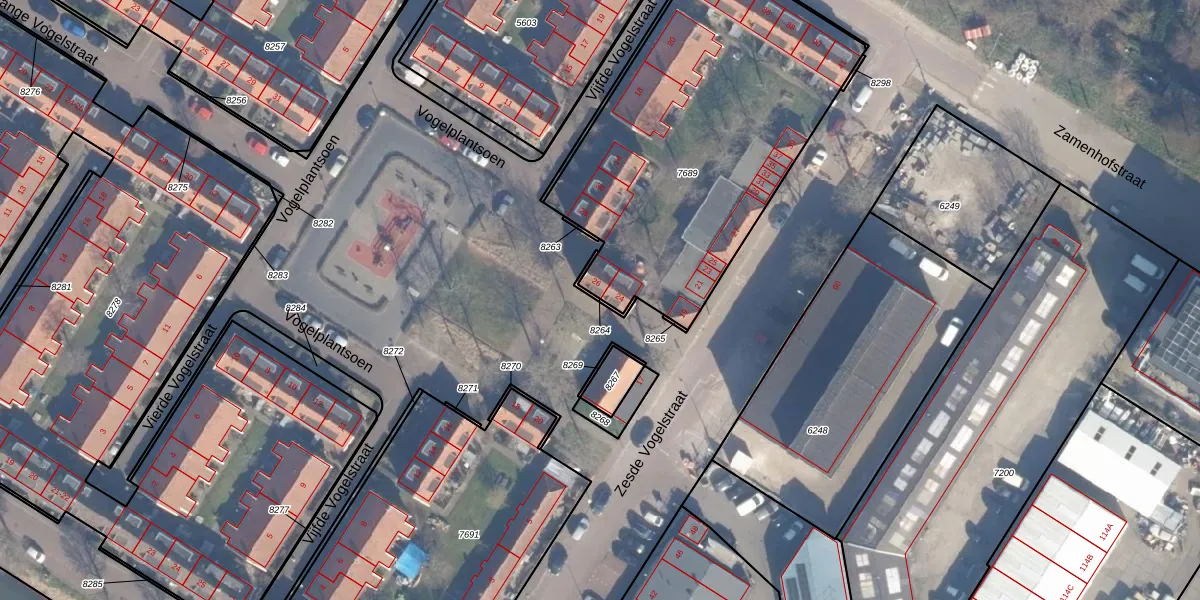 Gebruik de zoekbalk of klik op een perceel om informatie over het perceel te bekijken.