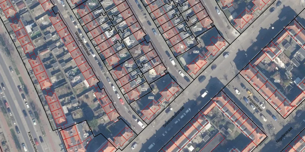 Gebruik de zoekbalk of klik op een perceel om informatie over het perceel te bekijken.