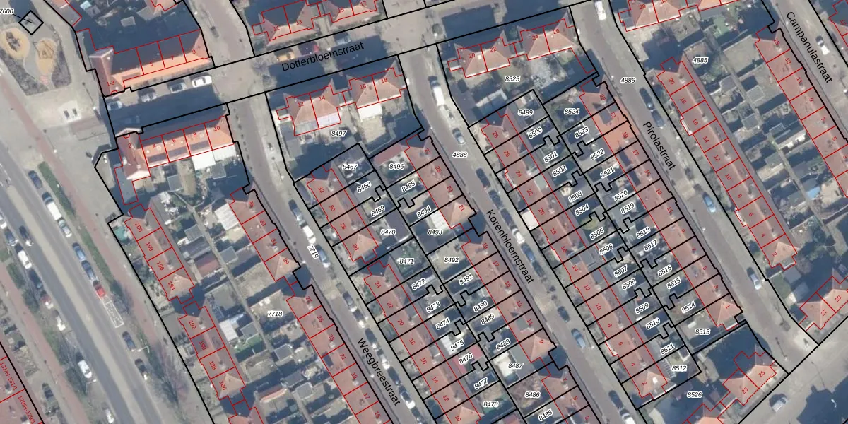 Gebruik de zoekbalk of klik op een perceel om informatie over het perceel te bekijken.