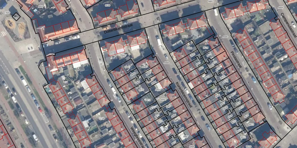 Gebruik de zoekbalk of klik op een perceel om informatie over het perceel te bekijken.