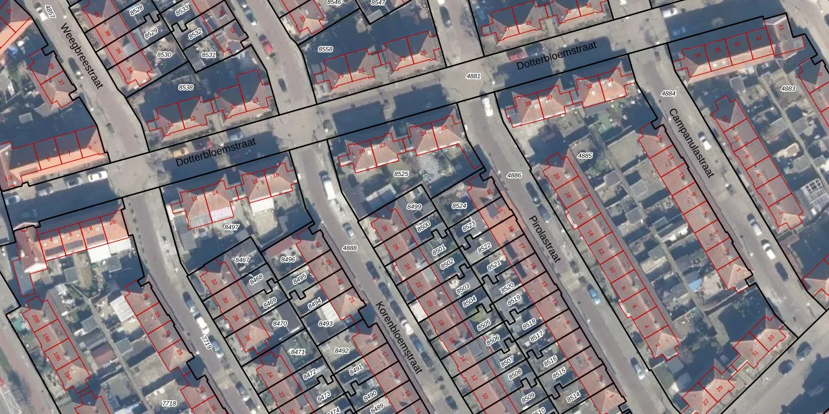 Gebruik de zoekbalk of klik op een perceel om informatie over het perceel te bekijken.