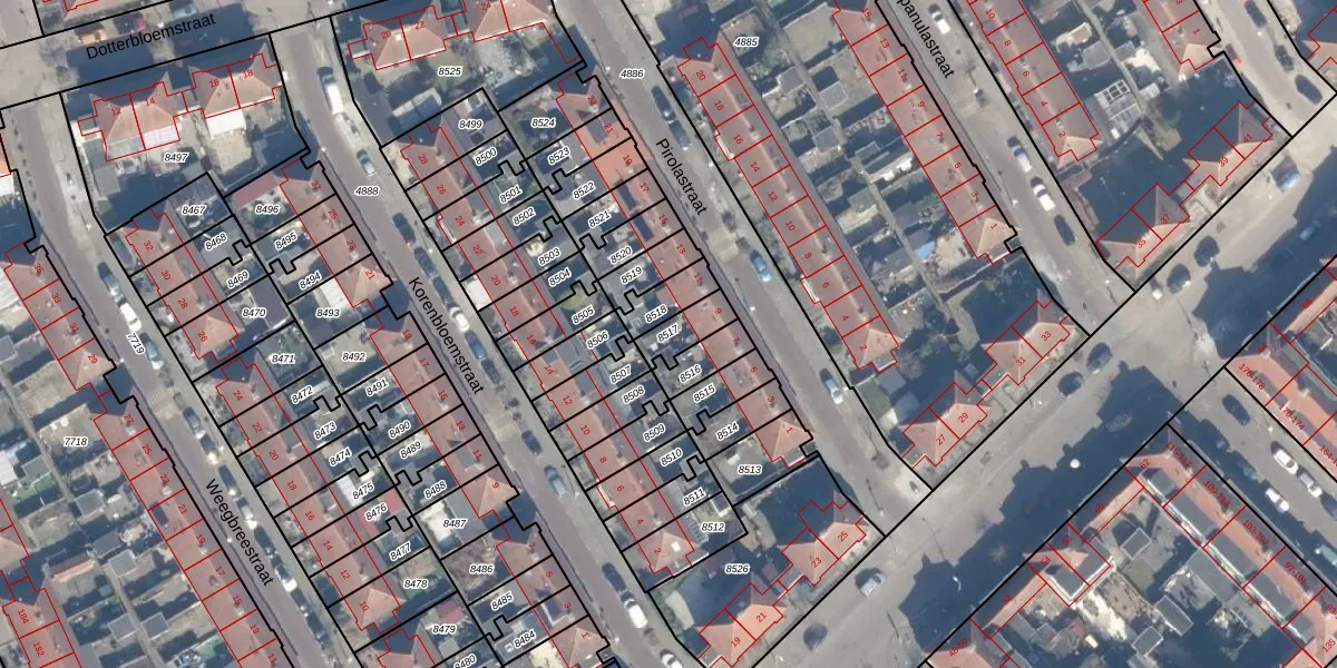 Gebruik de zoekbalk of klik op een perceel om informatie over het perceel te bekijken.