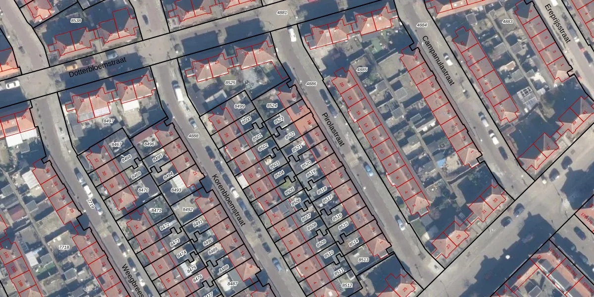 Gebruik de zoekbalk of klik op een perceel om informatie over het perceel te bekijken.