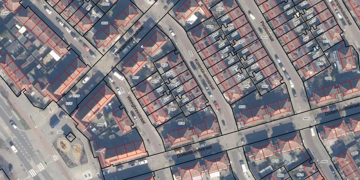 Gebruik de zoekbalk of klik op een perceel om informatie over het perceel te bekijken.