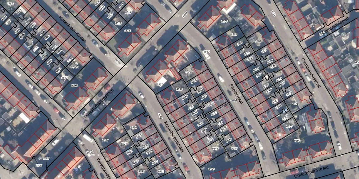 Gebruik de zoekbalk of klik op een perceel om informatie over het perceel te bekijken.