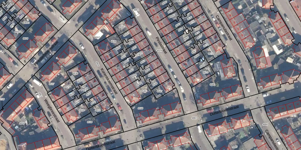 Gebruik de zoekbalk of klik op een perceel om informatie over het perceel te bekijken.