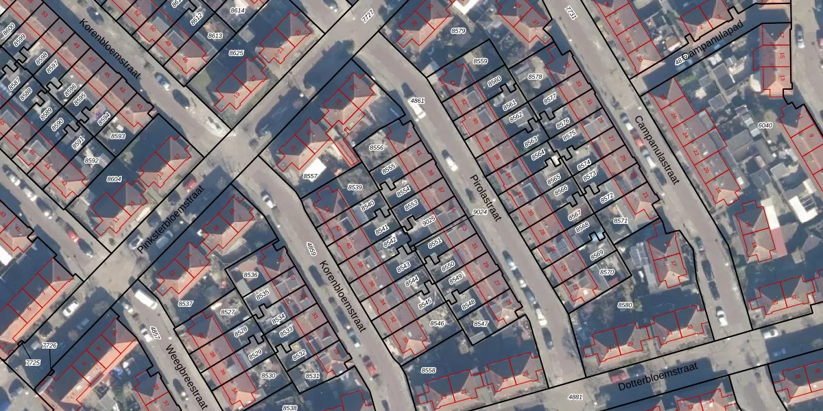 Gebruik de zoekbalk of klik op een perceel om informatie over het perceel te bekijken.