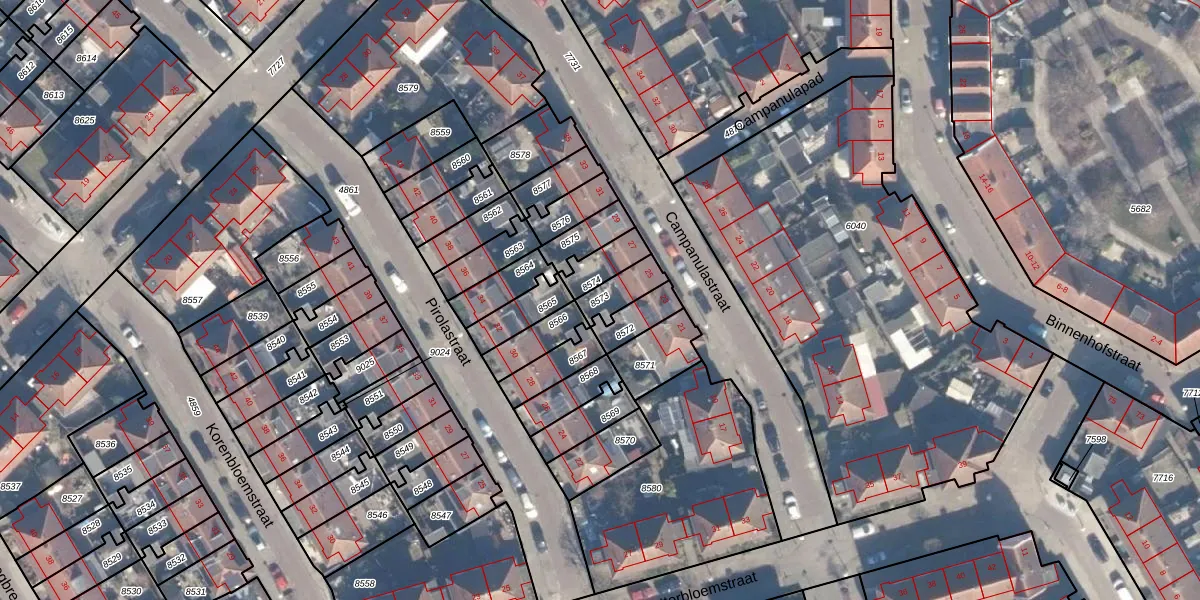 Gebruik de zoekbalk of klik op een perceel om informatie over het perceel te bekijken.