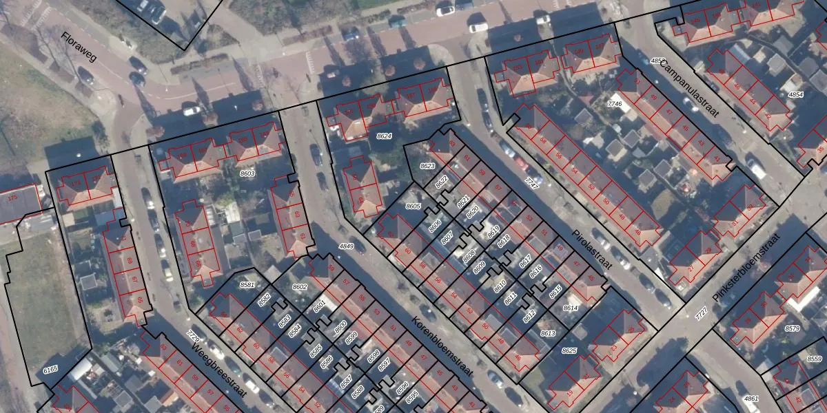 Gebruik de zoekbalk of klik op een perceel om informatie over het perceel te bekijken.