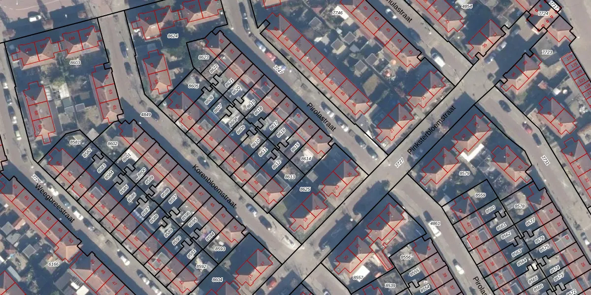 Gebruik de zoekbalk of klik op een perceel om informatie over het perceel te bekijken.