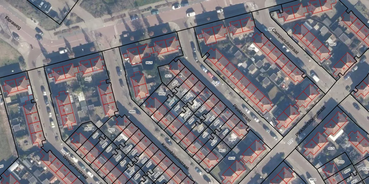 Gebruik de zoekbalk of klik op een perceel om informatie over het perceel te bekijken.