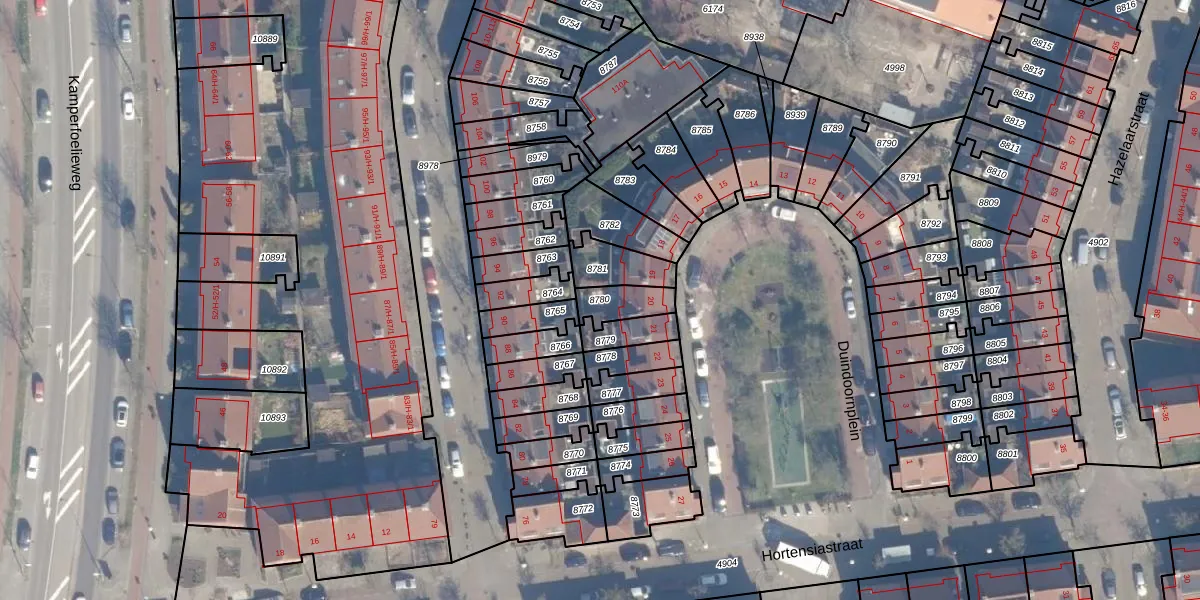 Gebruik de zoekbalk of klik op een perceel om informatie over het perceel te bekijken.