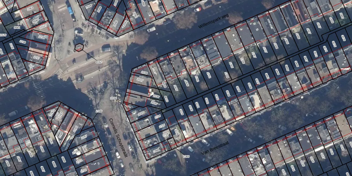 Gebruik de zoekbalk of klik op een perceel om informatie over het perceel te bekijken.