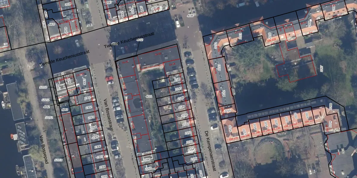 Gebruik de zoekbalk of klik op een perceel om informatie over het perceel te bekijken.