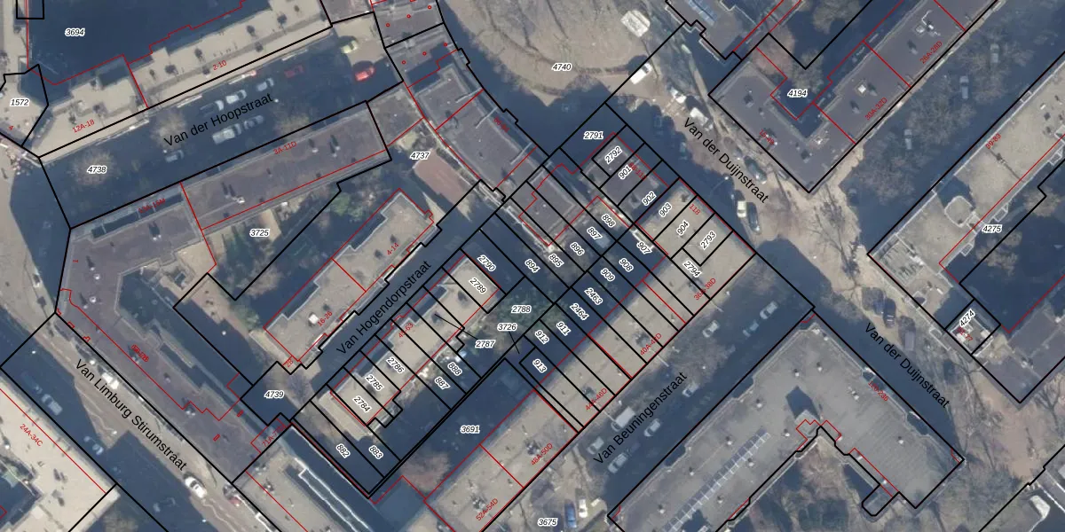 Gebruik de zoekbalk of klik op een perceel om informatie over het perceel te bekijken.