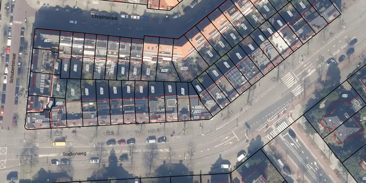 Gebruik de zoekbalk of klik op een perceel om informatie over het perceel te bekijken.