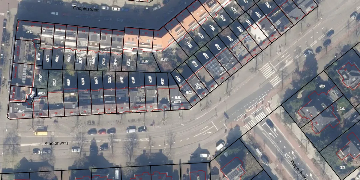 Gebruik de zoekbalk of klik op een perceel om informatie over het perceel te bekijken.
