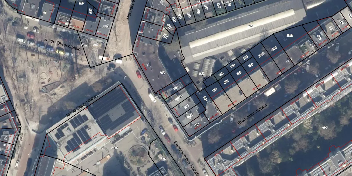 Gebruik de zoekbalk of klik op een perceel om informatie over het perceel te bekijken.
