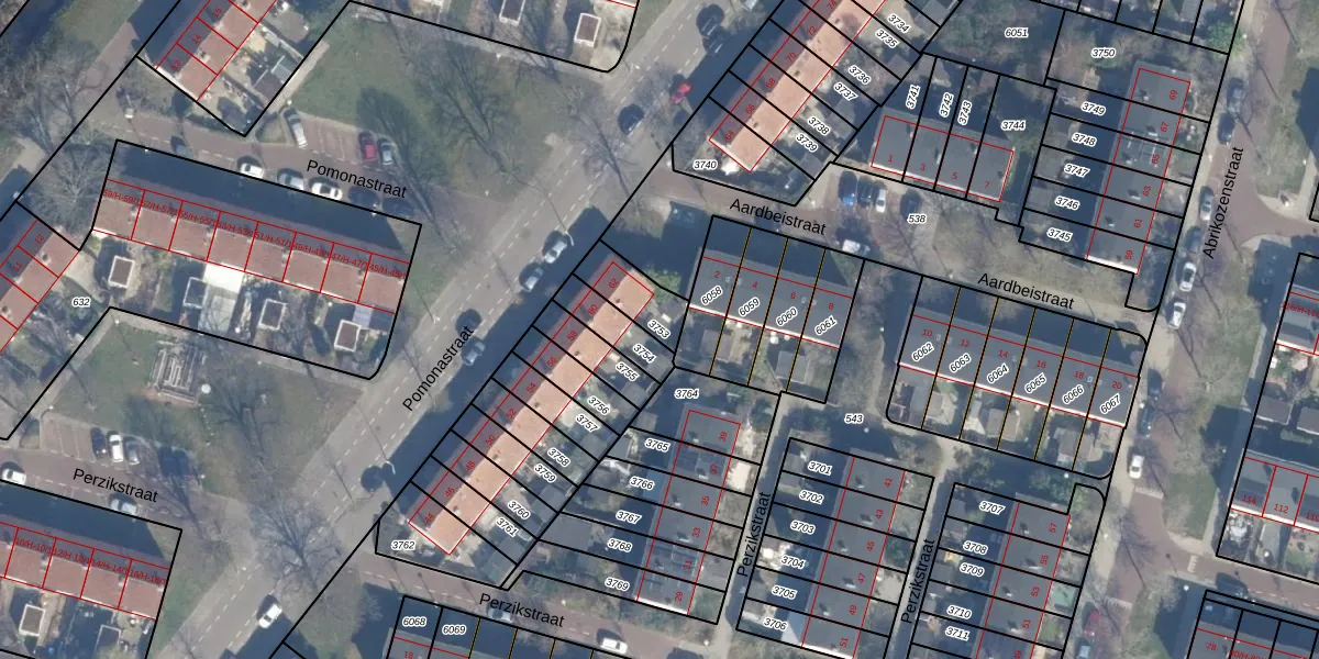 Gebruik de zoekbalk of klik op een perceel om informatie over het perceel te bekijken.