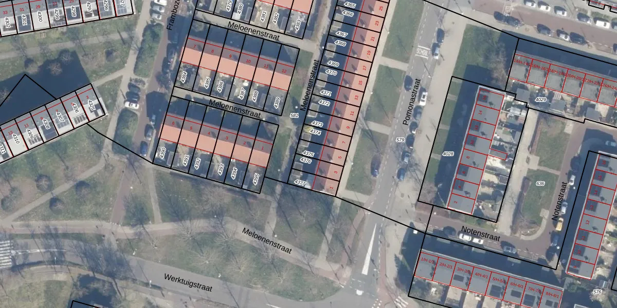 Gebruik de zoekbalk of klik op een perceel om informatie over het perceel te bekijken.