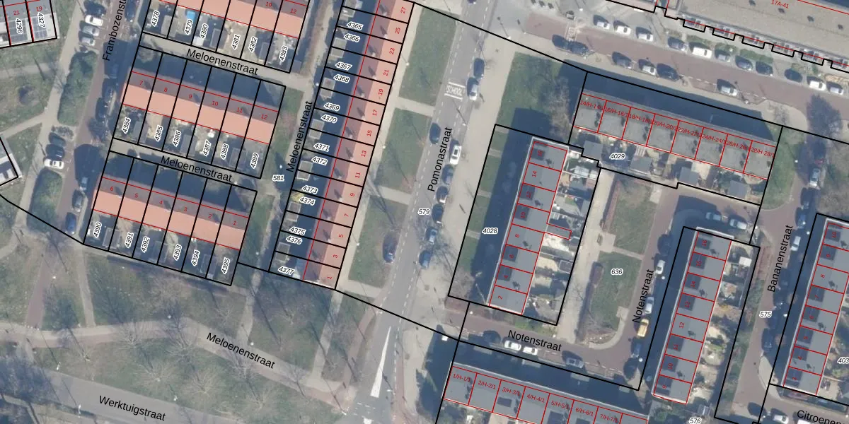 Gebruik de zoekbalk of klik op een perceel om informatie over het perceel te bekijken.